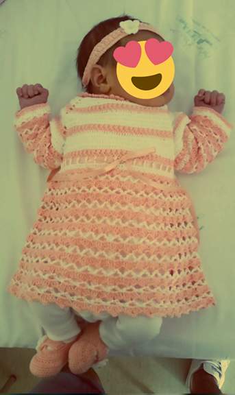 Porque para primeira roupinha os médicos não querem nada que seja difícil de vestir, eu até compreendo mas um vestidinho não era difícil de vestir.
